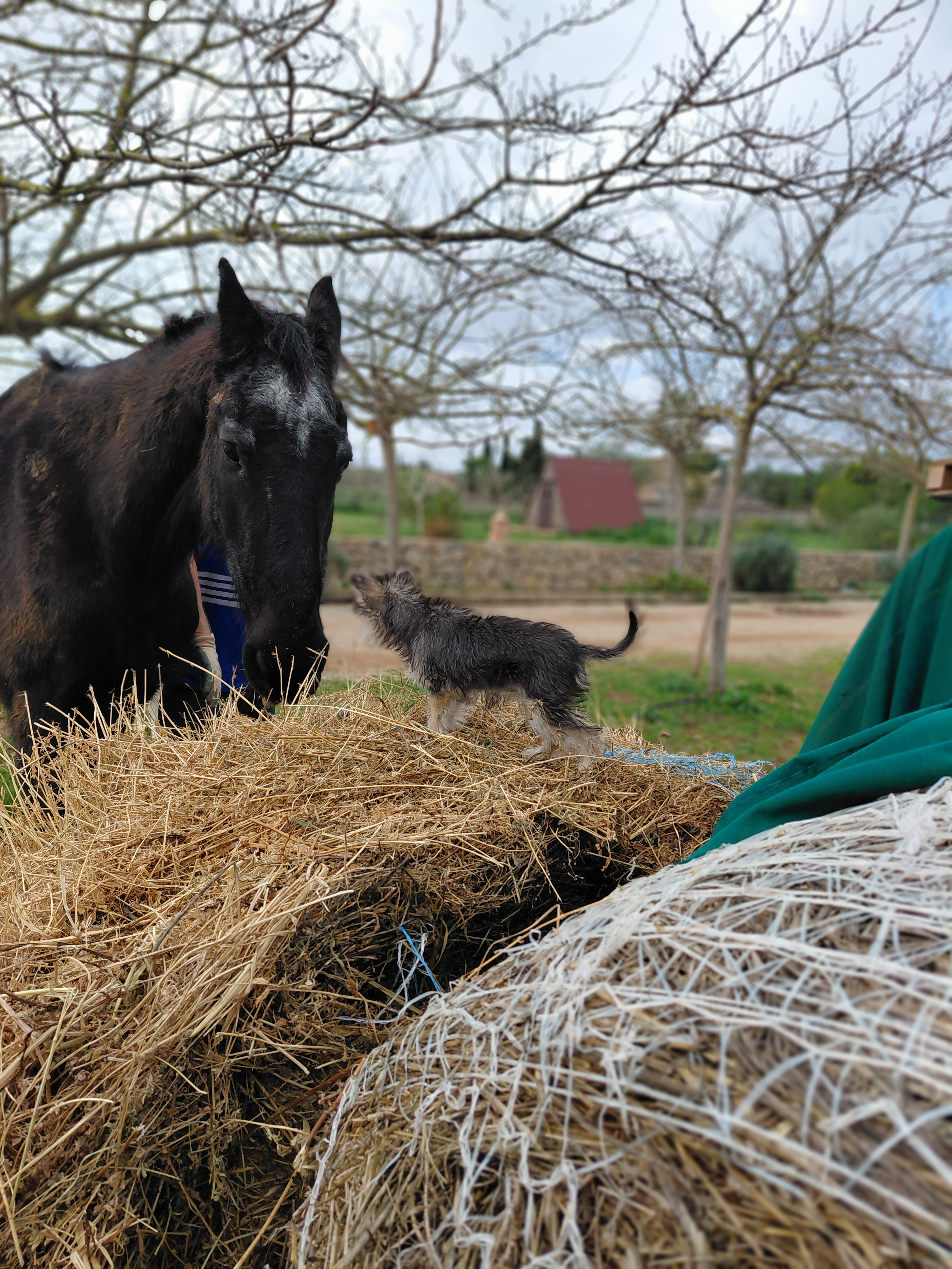 | Hair colour: Black with brown and white spots |